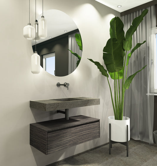 Dunkelgrauer Naturstein Waschtisch Pietra Lavica - eckig mittig