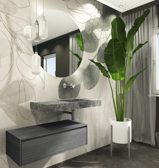 Hellgrauer Naturstein Waschtisch Iceland Dark. Marmor. Eckig mittig