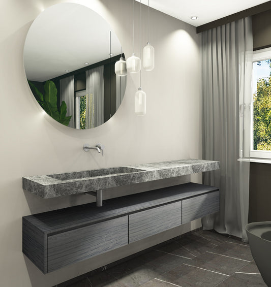 Hellgrauer Naturstein Waschtisch Iceland Dark. Marmor. Eckig rechts