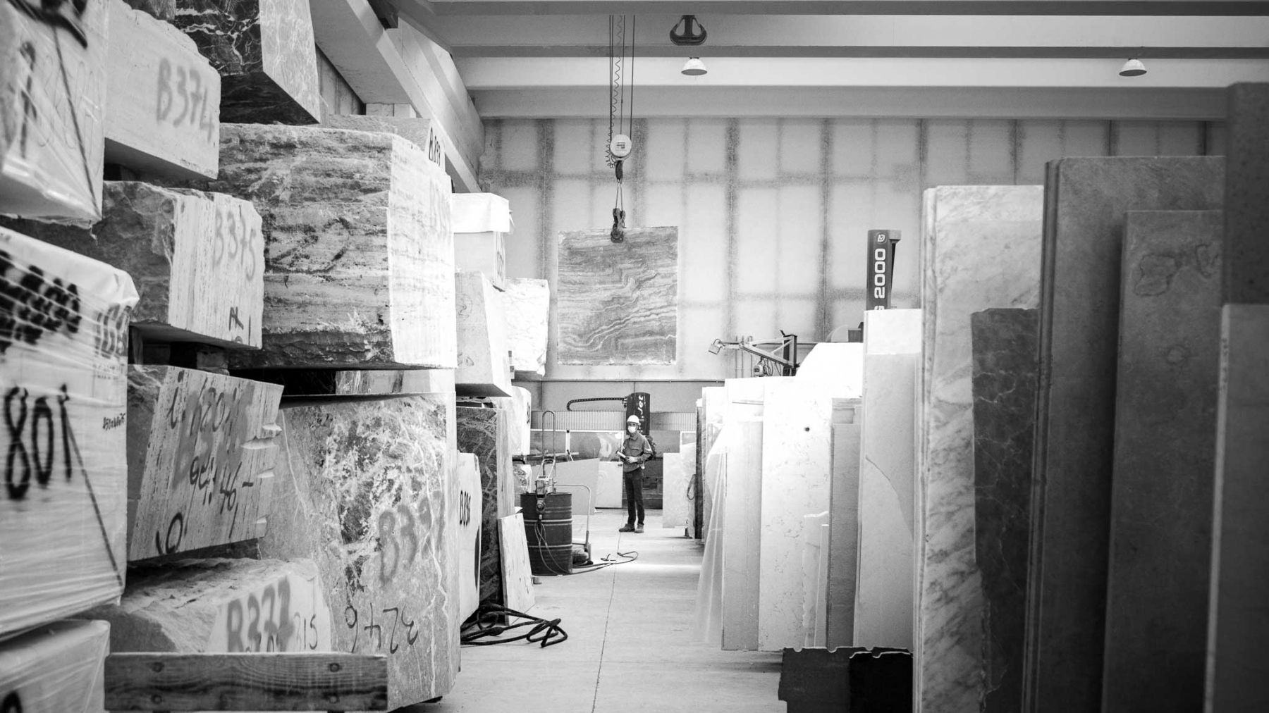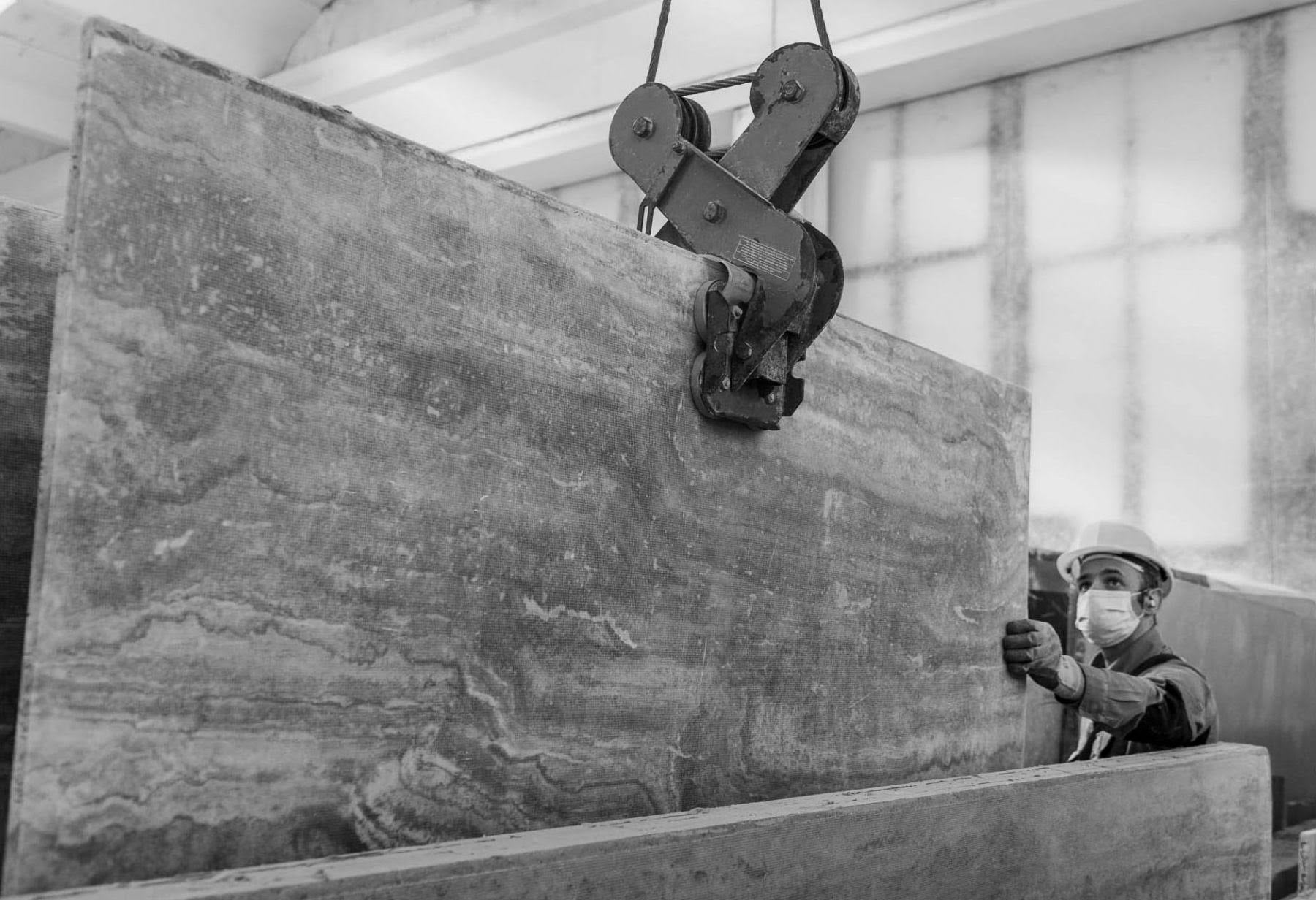 Naturstein wird in Blöcken im Steinbruch gewonnen und dann mittels Steingatter zu Platten gesägt. Jeder Stein ist ein Unikat und kommt nur ein einziges Mal vor.